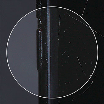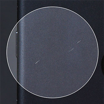 • Display can have light scratches. No delamination; cracks; heavy scratches; pressure marks/white spots; discolouration or dead pixels. No screen burn. Screen has not lifted.
